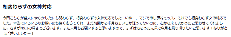 相変わらず女神対応でした。本当にいろいろなお願いにも快く応じてくれ、まだ前回から半月ちょいしか経ってないのに、心から来てよかったと思わせてくれました。