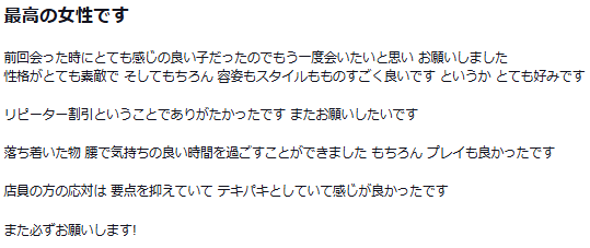 落ち着いた物 腰で気持ちの良い時間を過ごすことができました もちろん プレイも良かったです