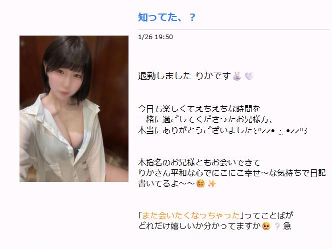 イメージは写メ日記の雰囲気の通りですが、出会ってすぐから笑顔が素敵で良く喋ってくれるキュートな女の子でした。