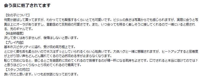 何度か遊ばして貰ってますが、わかってても緊張するくらいとても可愛いです。ビジュの良さは写真からでも感じられますが、実際に会うと写真以上にオーラがありますし、言動含めて反則級の可愛さです。