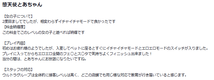 プレイに入ってからもエロエロ全開のフェ◯とス◯タで気持ちよくフィニッシュ出来ました!