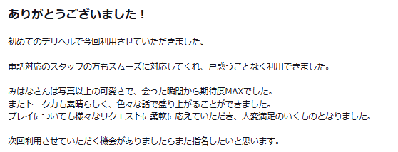 みはなさんは写真以上の可愛さで、会った瞬間から期待度MAXでした。