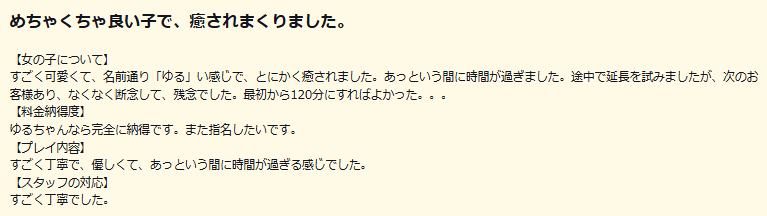 すごく丁寧で、優しくて、あっという間に時間が過ぎる感じでした。